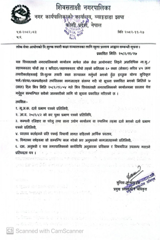 कनकाई र कमल खोलाको माटो भरौट र बलौट संकलन तथा बिक्री सम्बन्धी ठेक्का आवह्नको सूचना ।