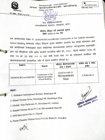 » बोलपत्र स्वीकृत गर्ने आशयको सूचना ।