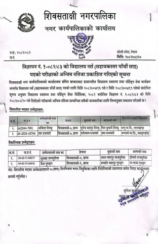 अन्तिम नतिजा प्रकाशन गरिएको सूचना ।