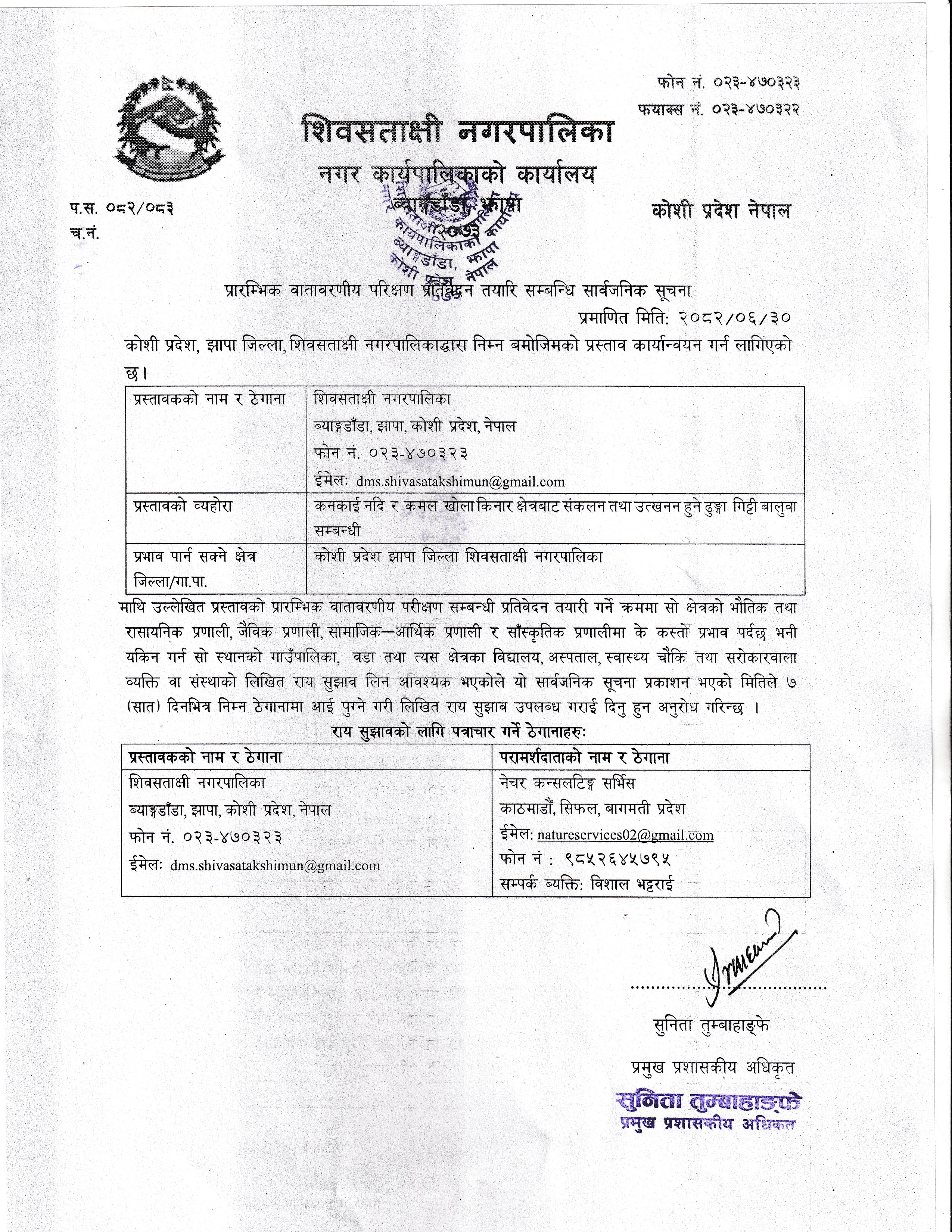 प्रारम्भिक वातावरणीय परिक्षण प्रतिवेदन तयारि सम्बन्धि सार्वजनिक सुनुवाईको सार्वजानिक सूचान ।